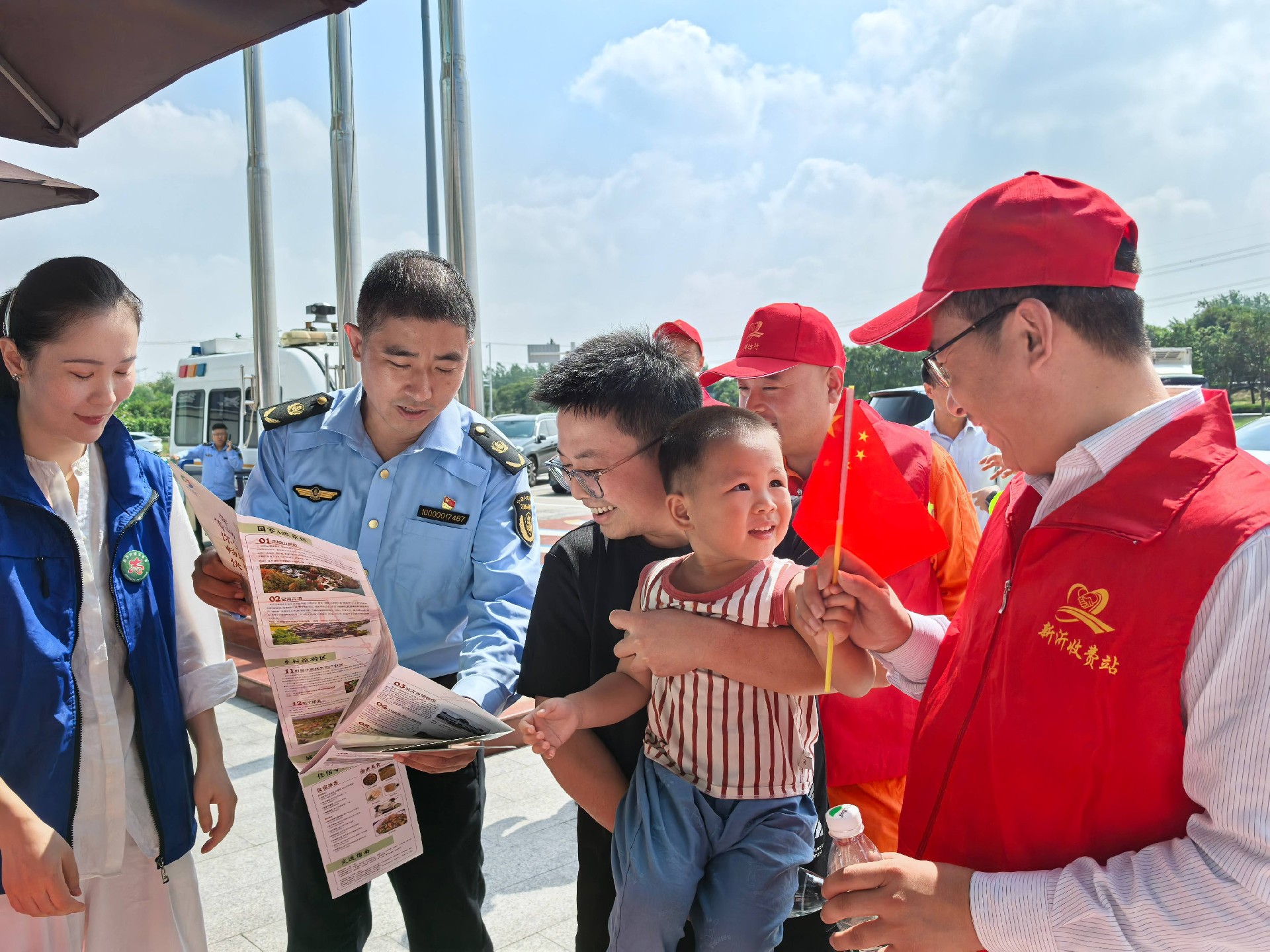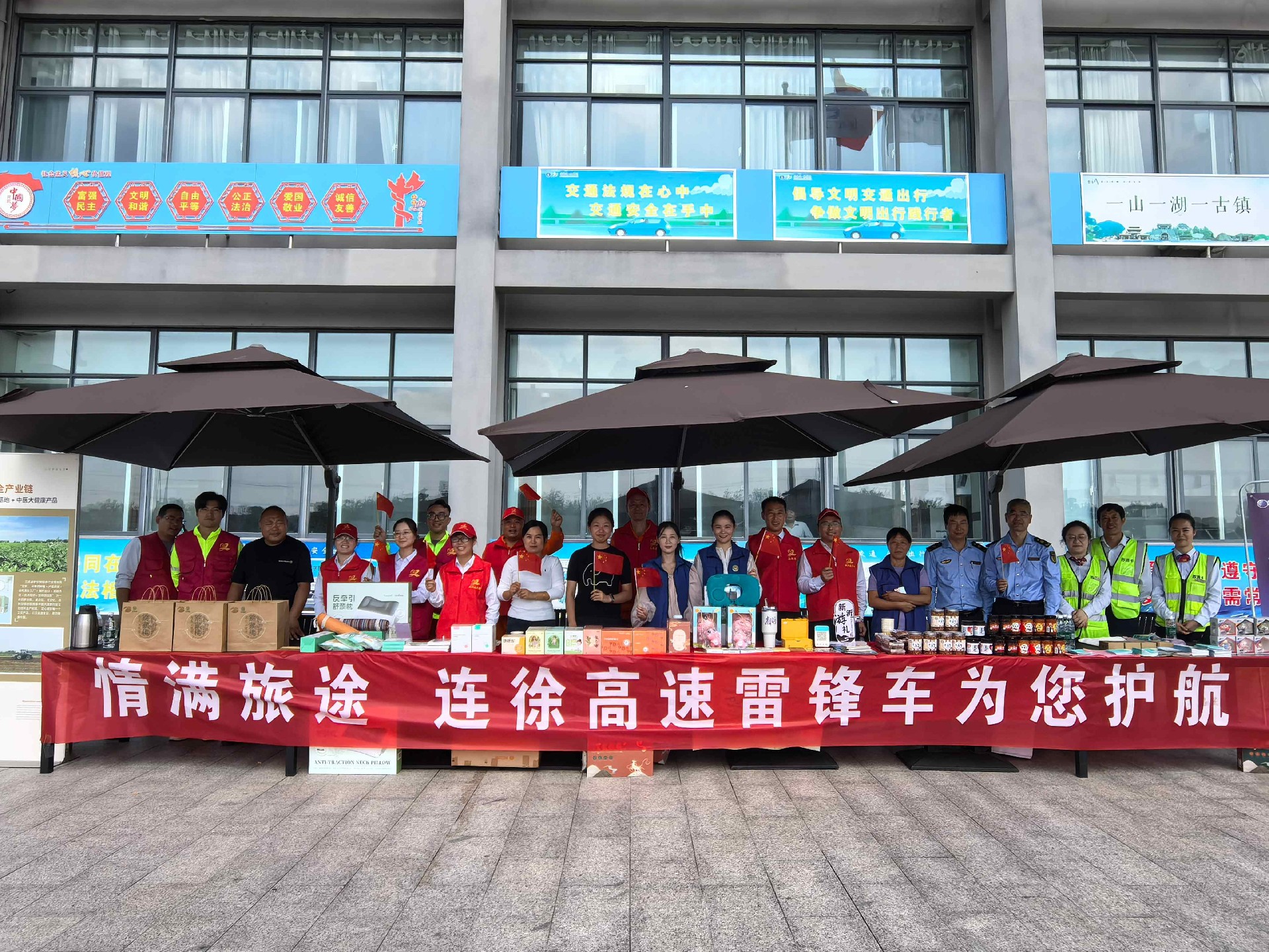 展台前,年轻父母怀里抱着孩子,手中捧着清甜多汁的猕猴桃,还细心收好新沂文旅定制工艺折扇与“高速雷锋车” 主题钥匙扣、手机支架;银发老人围在艾草制品展台前,反复询问“艾足贴”“晕车贴”的使用方法,不时点头称赞;心急的游客匆匆取走景点导览图与“高速雷锋车”遮阳伞,朝着马陵山、窑湾古镇的方向奔赴一场“说走就走的旅行”;趁着车辆休整的间隙,不少私家车主在苏通卡邳州客服中心展台前办理 ETC,工作人员一边熟练安装设备,一边耐心解答通行疑问,而连徐“高速雷锋车”志愿者则俯身为车辆检查胎压,一遍遍叮嘱“节日出行,安全第一”。