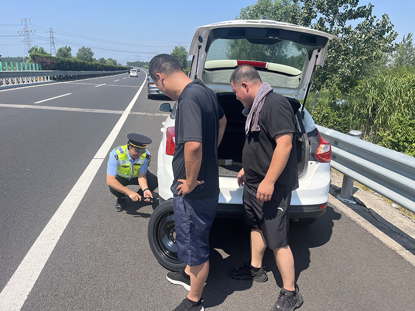 车辆突发爆胎 连徐“高速雷锋车”5分钟高效救援